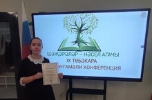 Татарстан Республикасы Мәгариф һәм фән министрлыгы тарафыннан үткәрелгән «ШӘҖӘРӘЛӘР — НӘСЕЛ АГАЧЫ» төбәкара фәнни-гамәли конференциядә катнашучы СЕРТИФИКАТЫ белән Хакимуллина Алия 10нчы сыйныф укучысы бүләкләнде. Фәнни җитәкчесе: Низамова Зөлфия Миннехан кызы.