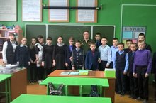 Бүген, гражданлык һәм патриотик айлык рамкаларында, 5 сыйныф укучылары Русия Федерациясе кораллы көчләре подполковнигы Хамзин Марс Мансур улы белән очрашты