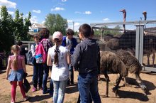 Сегодня ребята нашего лагеря посетили страусиную ферму , ребята узнали много интересного о повадках этих птиц , покатались на лошади , покормили животных , дети получили кучу эмоций и хорошего настроения