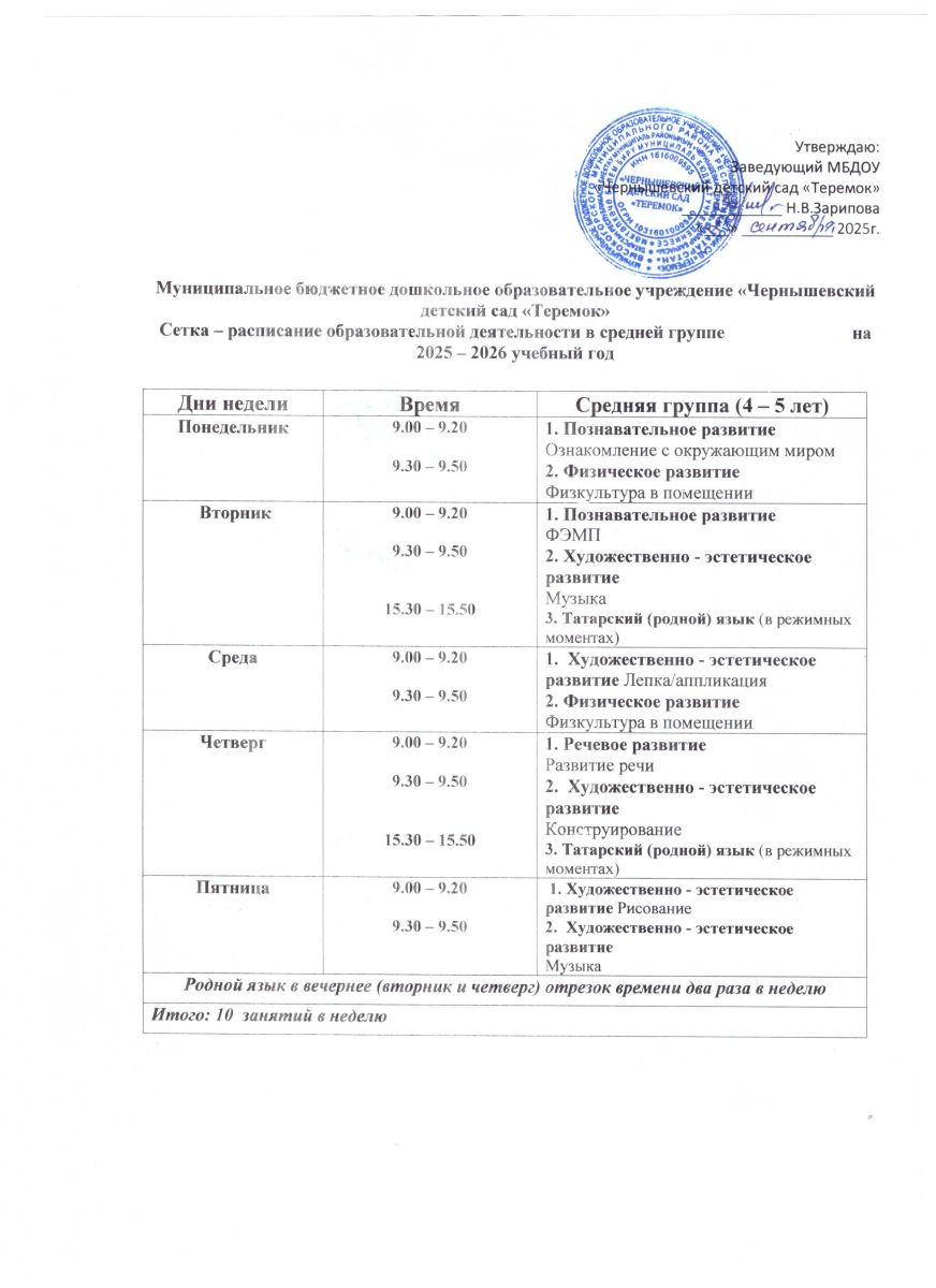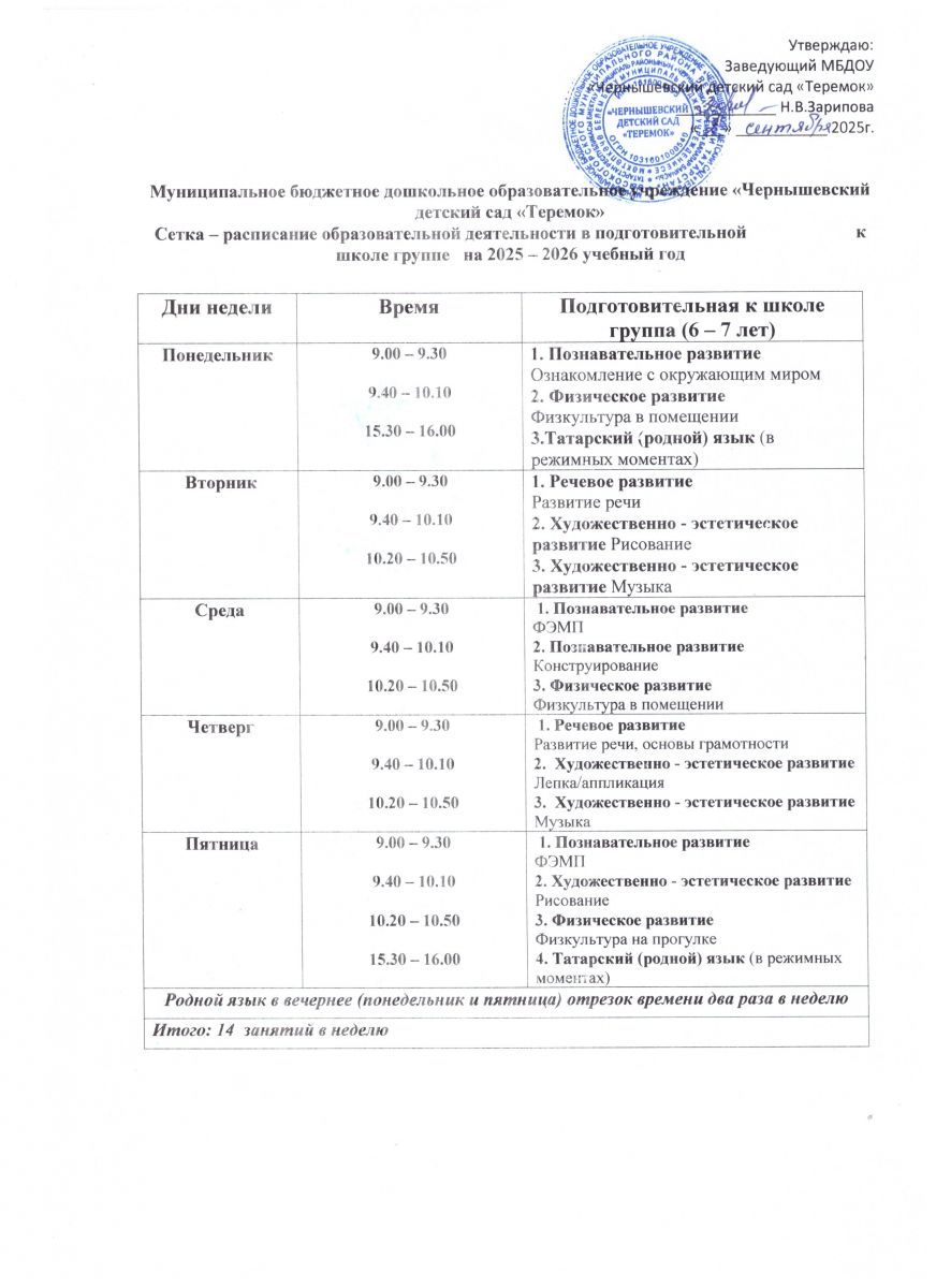 Сетка занятий в подготовительной к школе группе на 2025-2026