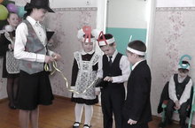 Юные артисты школьной театральной студии "Лицедеи" приняли активное участие в районном конкурсе "Говорим и поём по-английски". На суд зрителей они представили театральную постановку по произведению Г.Тукая "Коза и баран".