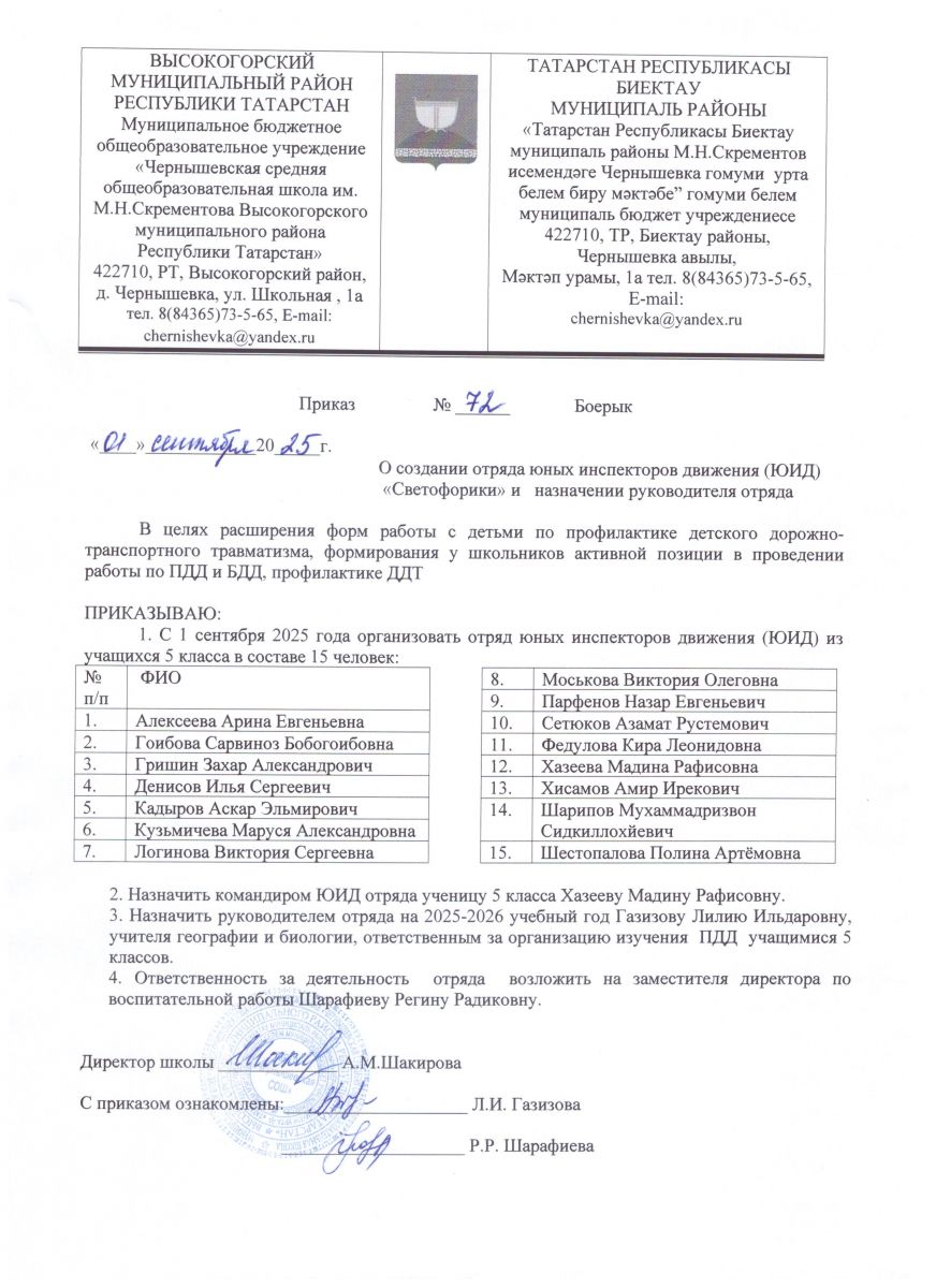 Приказ о создании отряда ЮИД на 2025-2026 учебный год