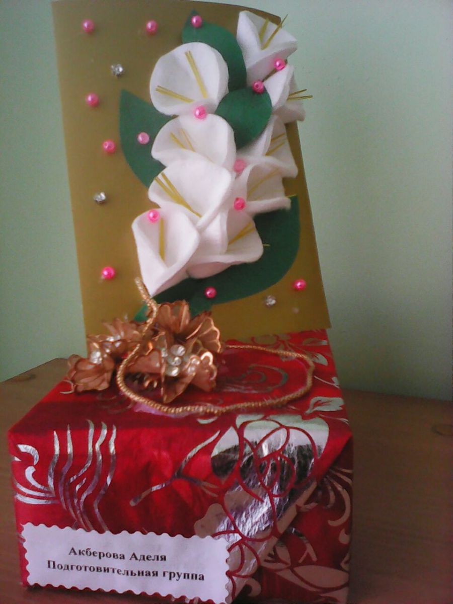 8 март бәйрәменә әниләр үз куллары белән төрле кул эшләре эшләп алып килделәр. Әлбәттә балалар ярдәме белән. Без аларга бик зур рәхмәтлебез.
