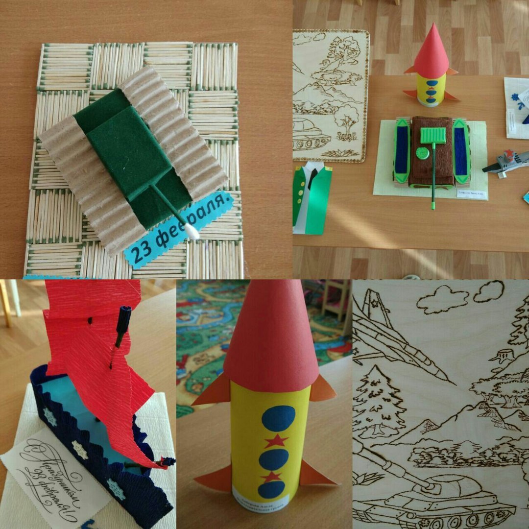 Мальчики и девочки средней группы сделали своими руками для своих пап подарок ко Дню Защитников Отечества.