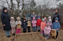 Сегодня на территории нашего детского сада развешивали скворечники и кормушки, сделанные руками родителей воспитанников.