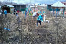 Бакча хезмәткәрләре язгы өмәгә чыгып, бакча территориясен, уен мәйданчыкларын чүп-чардан арындырдылар.