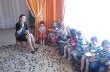 Якынлашып килүче Бөек Җиңүнең 70 еллыгы уңаеннан балаларны георгий лентасы белән таныштырдык. Лентаның каян барлыкка килгәне, бүгенге көндә ничек кулланылганы, төсләре нәрсә аңлатканы турында сөйләдек. Ата-аналар белән дә георгий лентасы турында әңгәмәләр уздырдык
