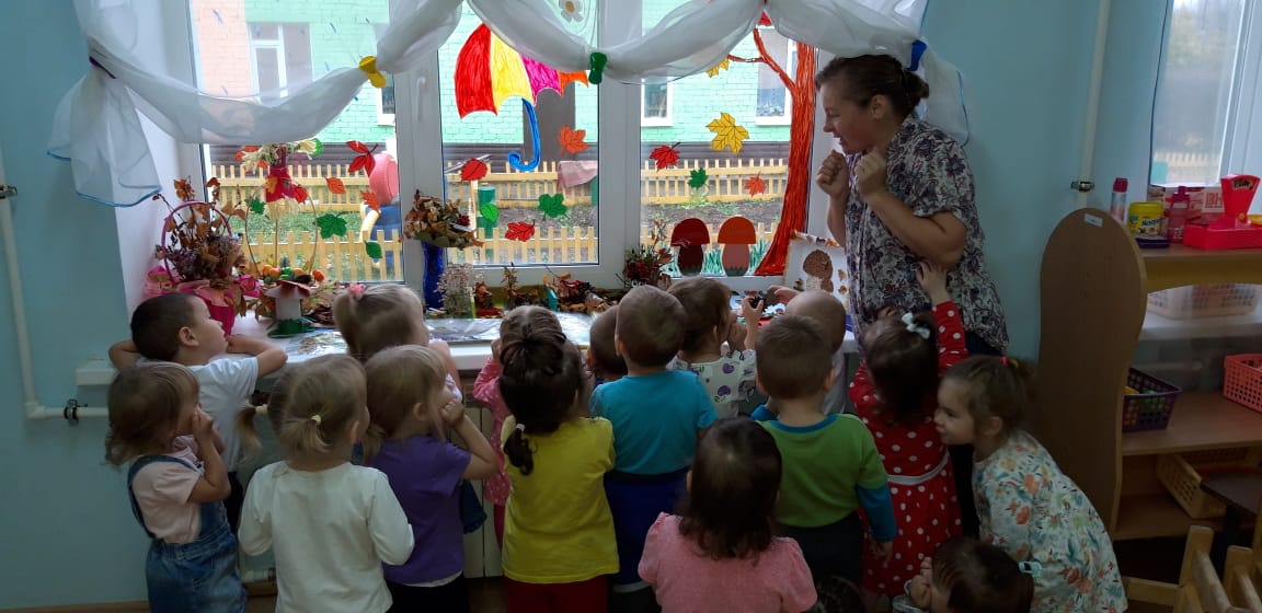 Кечкенэлэр тэркемендэ Табигать почмагында. Осенний уголок природы в ясельной группе.