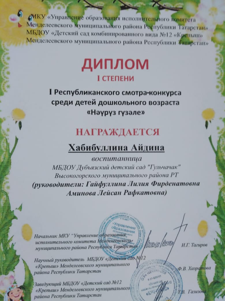 Муниципальное бюджетное дошкольное образовательное учреждение «Дубъязский детский сад «Гульчачак» Высокогорского муниципального района Республики Татарстан»/"Татарстан Республикасы Биектау муниципаль районының "Дөбьяз"Гөлчәчәк"балалар бакчасы ,мәктәпкәчә белем бирү муниципаль бюджет учреждениесе.