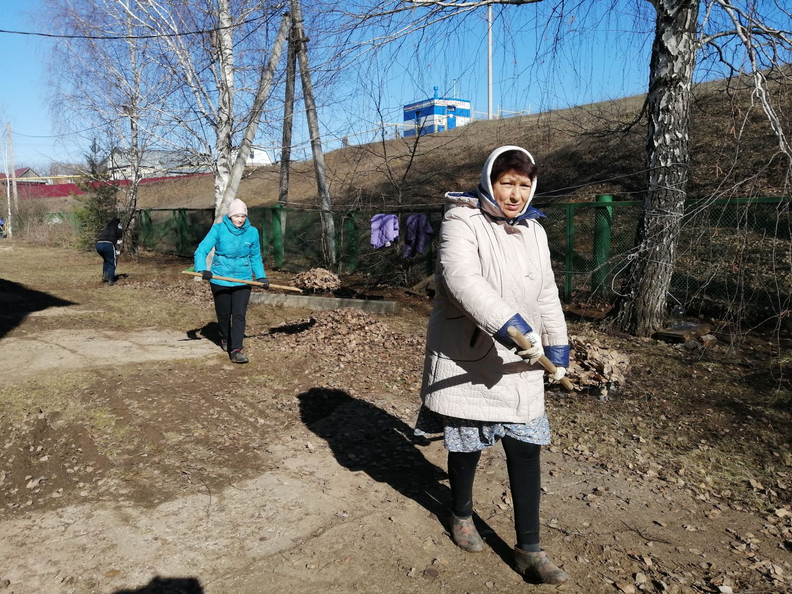 Әйләнә-тирәне җыештыру буенча өмә. Субботник по уборке территории.