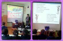 В целях укрепления духовных ценностей, сохранения памяти о героическом прошлом России в школе 9 декабря были проведены мероприятия, посвящённые Дню Героя Отечества в России. Учителя показали интересные компьютерные презентации "Гордимся славою героев", "Героические страницы истории Отечества", "Война глазами детей", "О гражданском долге, мужестве и героизме". На слайдах были изображены герои Отечественной войны 1812 года, герои Великой Отечественной войны, герои Афганистана и герои наших дней. В ходе всех мероприятий учащиеся познакомились с историей возникновения праздника, подвигами наших предков во имя независимости Родины.