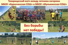 Сегодня состоялся товарищеский матч между летними лагерями МБОУ "Куркачинская СОШ" и МБОУ "Мульминская СОШ". Состоялись две игры: между старшими и младшими ребятами. Победа была за нами. ПОЗДРАВЛЯЕМ!!! МОЛОДЦЫ!!!
