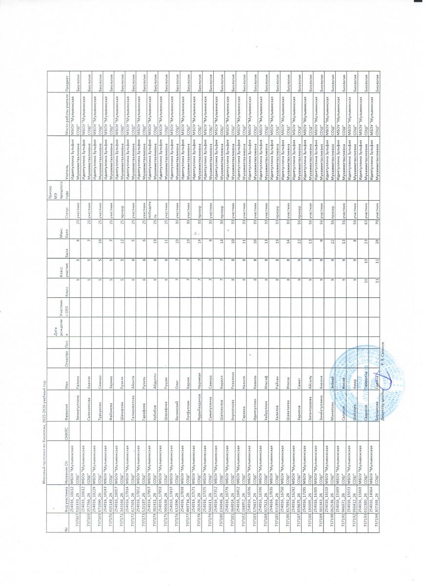 Первичный протокол по биологии Итоговый протокол по биологии