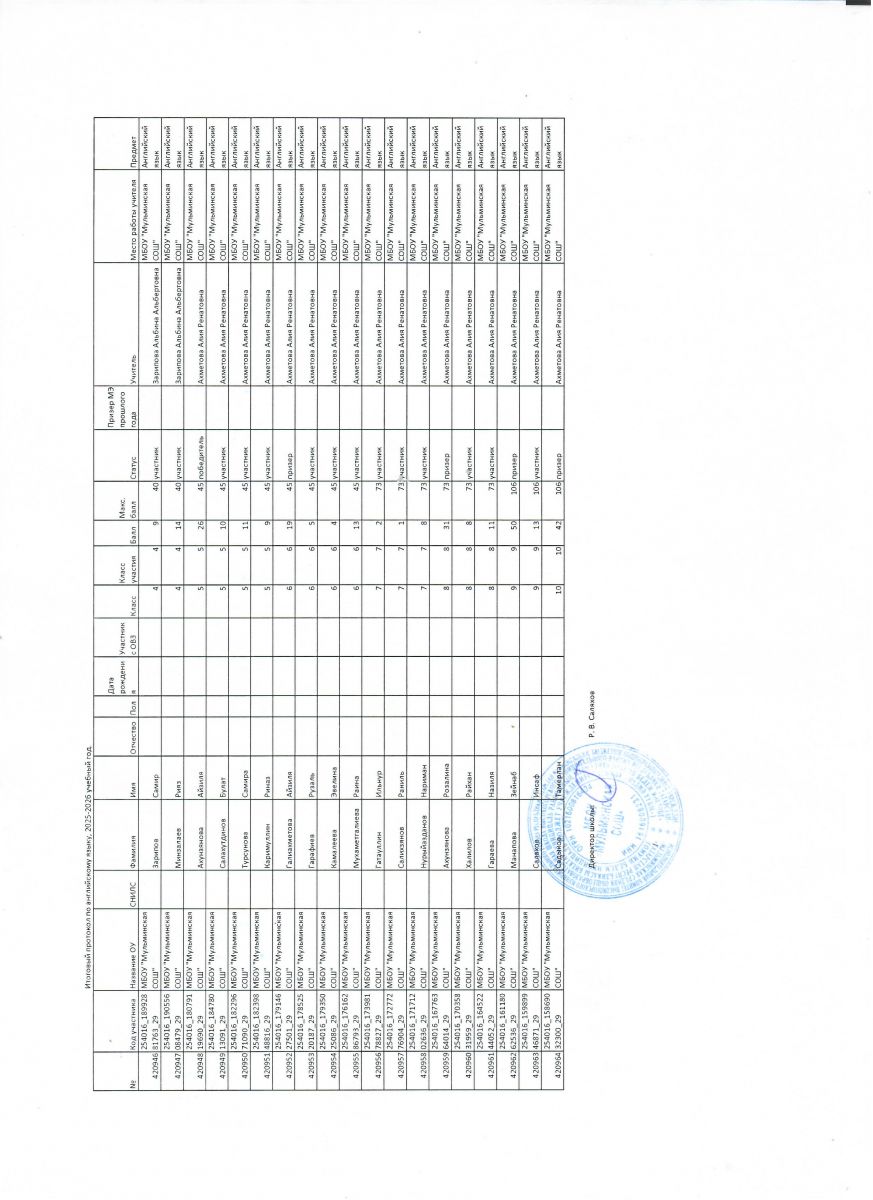 Первичный протокол по математике Итоговый протокол по математике