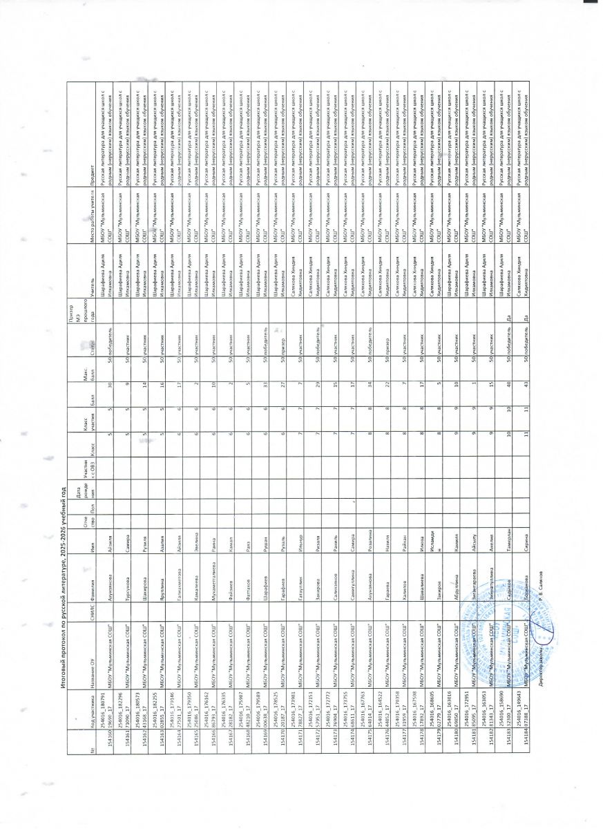 Задания по литературе Ключи по литературе Первичный протокол по литературе Итоговый протокол по литературе