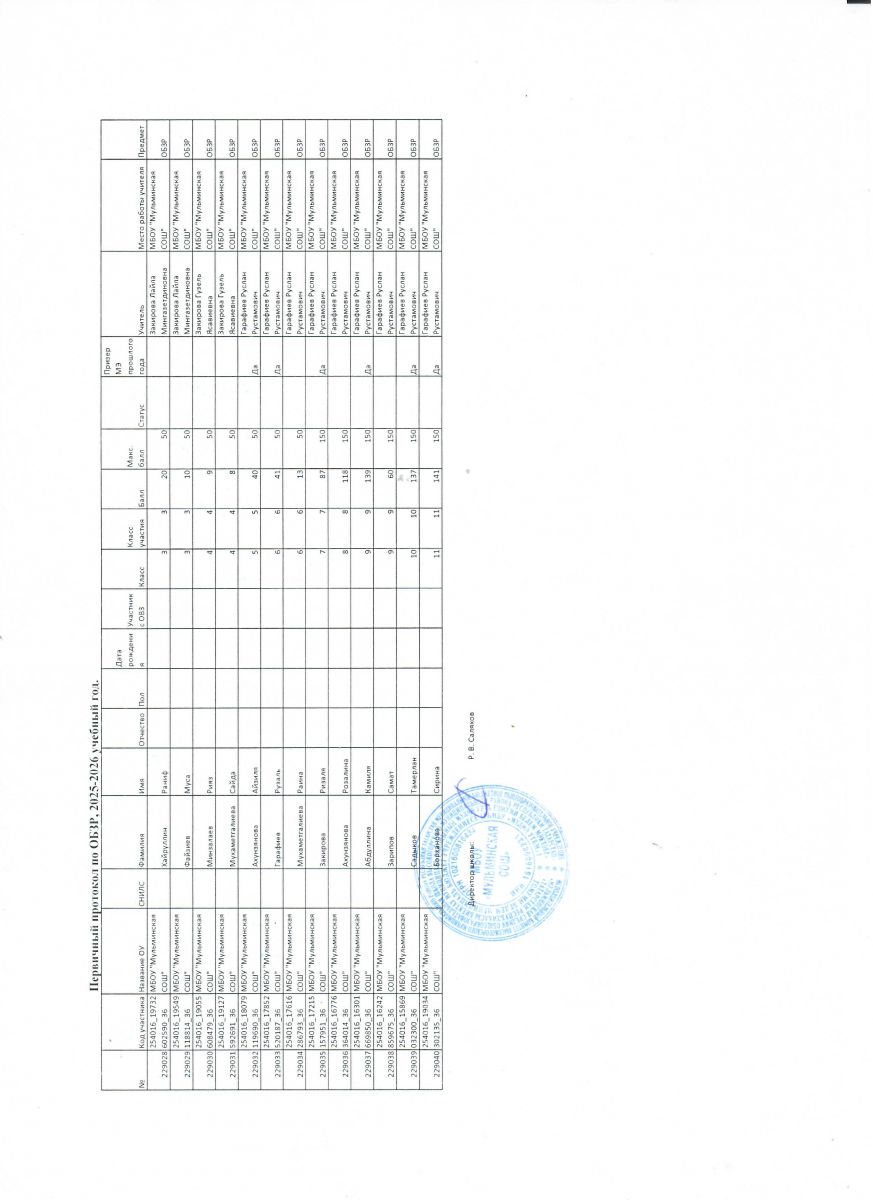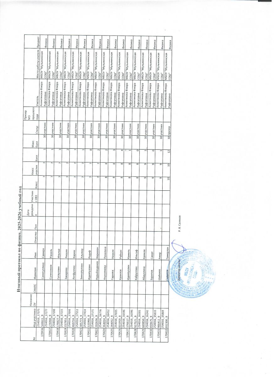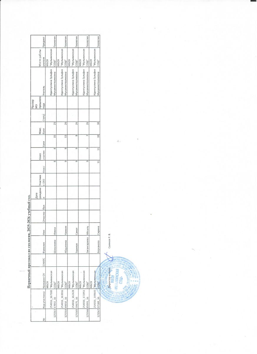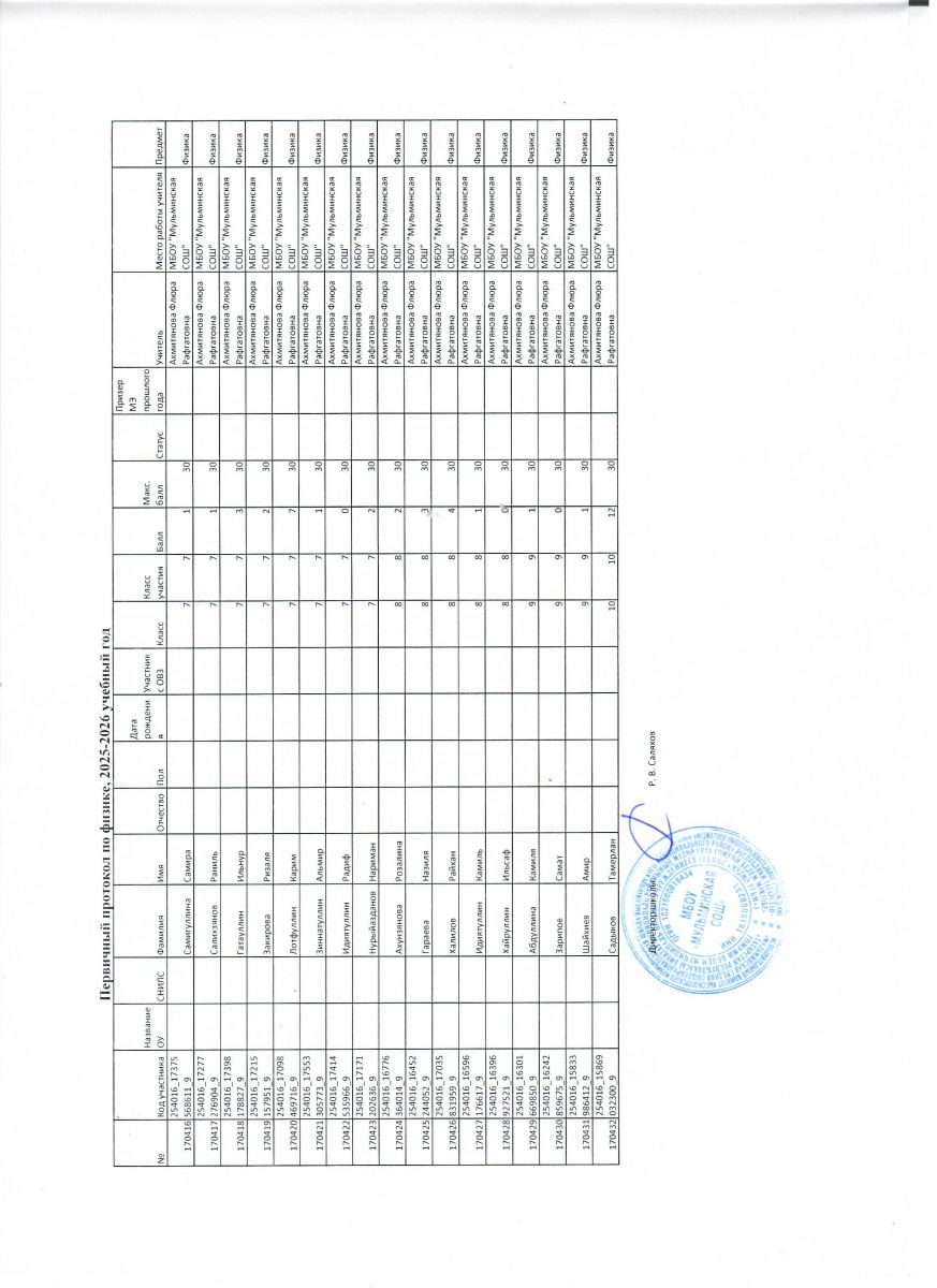 Первичный протокол по астрономии Итоговый протокол по астрономии
