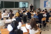 Сегодня в 4 "А" классе (учитель Самигулина А. Ю.) состоялся открытый урок, посвященный 117 - летию со дня рождения поэта-героя Мусы Джалиля. Учитель рассказал о творческом пути поэта, рассказал о "Джалильцах", ученики прочитали стихи поэта.