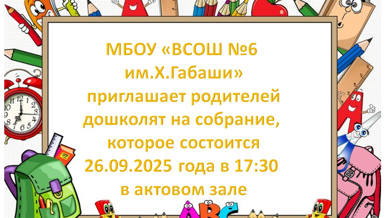 Родительские собрания пройдут в актовом зале МБОУ «ВСОШ 6 им.Х.Габаши».