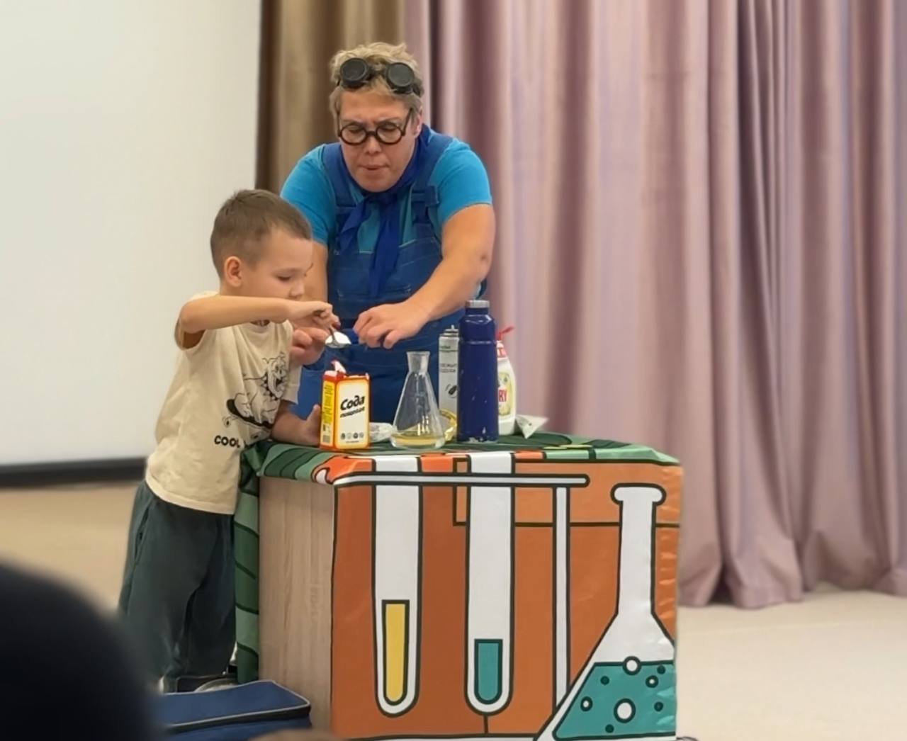 Шоу подарило малышам море эмоций, удивления и радости — ведь химия оказалась не скучной наукой, а настоящим волшебством!Благодарим тётю Люлю за захватывающее представление и отличное настроение!