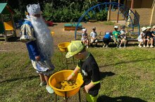 В солнечный летний день в детском саду состоялся веселый и незабываемый праздник — «День Нептуна»./ Җәйге кояшлы көндә балалар бакчасында күңелле һәм онытылмаслык бәйрәм — «Нептун көне» булды.