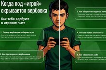 В карточках показано, какие слова и действия должны насторожить в игровом чате.
