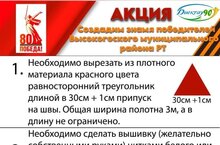 Создай треугольник из плотной ткани красного цвета с фамилией своего деда или прадеда и принеси его по указанному адресу. Давай вместе покажем, что помним и гордимся подвигами наших героев! Каждый маленький шаг имеет значение, и твоё участие внесёт большой вклад в сохранение памяти о великой эпохе! -