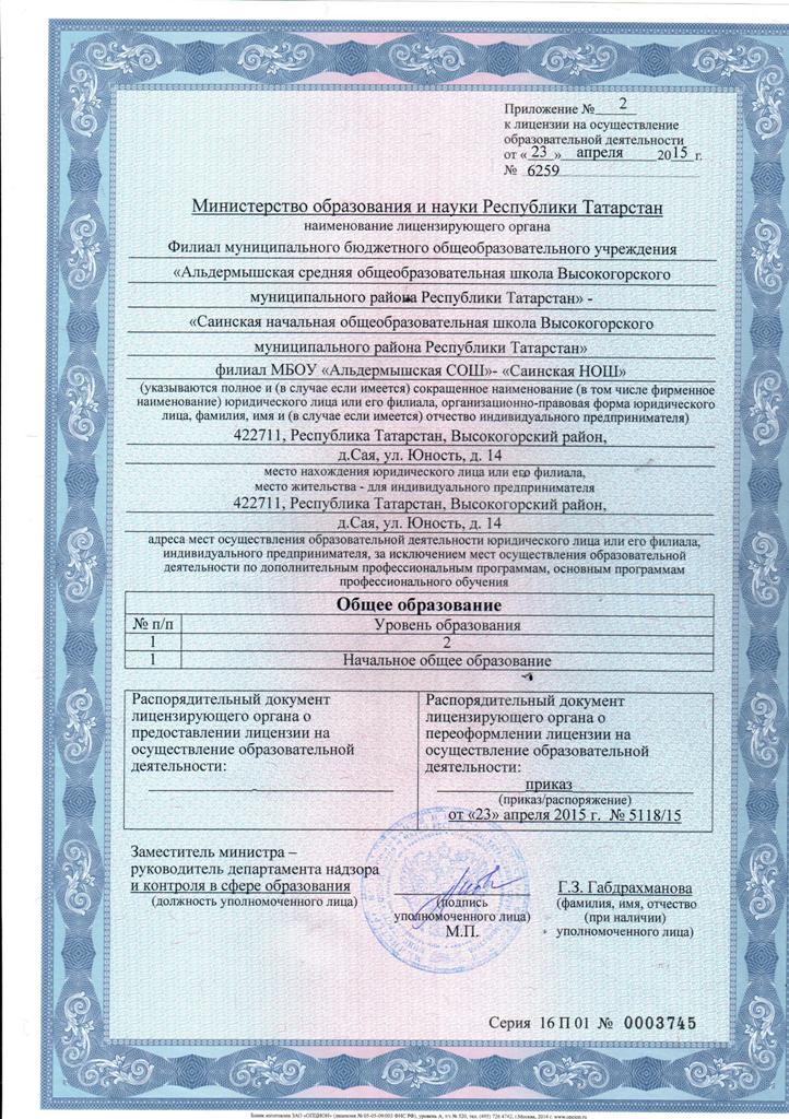 Филиал МБОУ "Альдермышская средняя общеобразовательная школа Высокогорского муниципального района РТ" - "Саинская начальная общеобразовательная школа Высокогорского муниципального района РТ" (реорганизация с 2008г.)