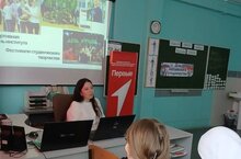 В рамках Всероссийской акции "Шаг в студенчество", посвящённая Дню российского студенчества, в стенах школы прошла Классная встреча со студенткой КФУ, учителем английского языка, Алиёй Миршатовой.