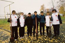 Первые нашей школы постоянно следят за территорией памятника Павшим землякам в ВОВ в нашем селе.