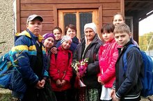 В рамках Декады пожилых 5 класс со своим классным руководителем Романовой Т.А. поздравили учителя ветерана Ивойлову Марию Фадеевну с Днем пожилых.