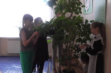 Продолжается "Неделя добрых дел!".Учащиеся 7 класса на уроке технологии устроили "генеральную уборку" для комнатных растений.