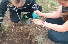 Учащиеся нашей школы участвовали в акции "Сад Победы". Посадили деревья, убирали территорию