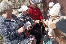 Воспитанники средней татарской группы, в рамках Акции, раздавали георгиевские ленточки жителям села Высокая гора. Всего было раздано более 80 ленточек.