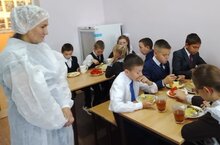 Представитель родительского контроля проверил наличие меню, сняла пробу подаваемых блюд.