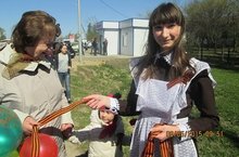 В дни проведения акции миллионы людей в Российской Федерации и других странах мира по доброй воле прикрепляют Георгиевскую ленточку – условный символ военной славы к одежде, публично демонстрируя свое уважение к воинам, сражавшимся за Отечество, всенародную гордость за Великую Победу. Вот и учащиеся нашей школы не остались в стороне. Была сформирована команда участников акции, приготовленны Георгиевские ленточки.