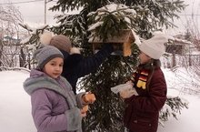 В пришкольном зимнем лагере пошла акция "Кормушка". На школьном дворе развешаны кормушки, куда прилетают полакомиться самые разнообразные птицы.