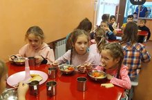 Мәктәп яны лагерында балалар өчен төрле меню тәкъдим ителде. Балалар иртәнге һәм төшке ашка бик теләп бара.