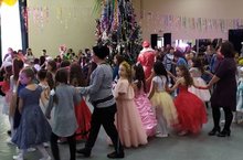 Второй день в пришкольном зимнем лагере начался с театрализованного представления "Встретим Новый год" и шоу мыльных пузырей, на котором присутствовали главные герои наступающего года - символ года 2020 Мышь, Дед Мороз и Снегурочка.