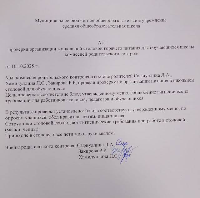 Приказ о создании комиссии по контролю питания в 2025-2026 учебном году