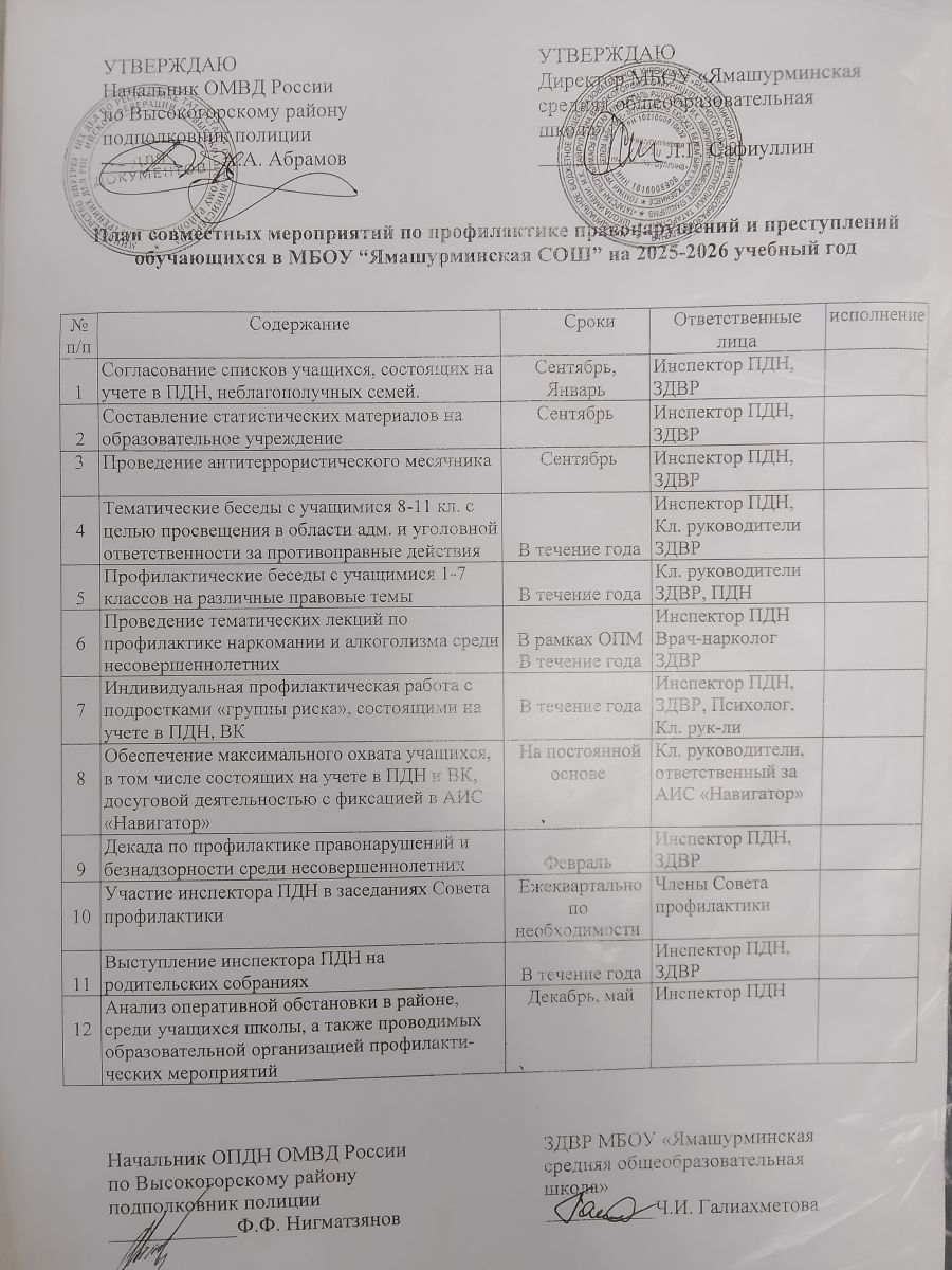 КАЛЕНДАРНЫЙ ПЛАН ВОСПИТАТЕЛЬНОЙ РАБОТЫ МБОУ «Ямашурминская СОШ имени И.К.Хайруллина» НА 2025-2026 УЧЕБНЫЙ ГОД СОО