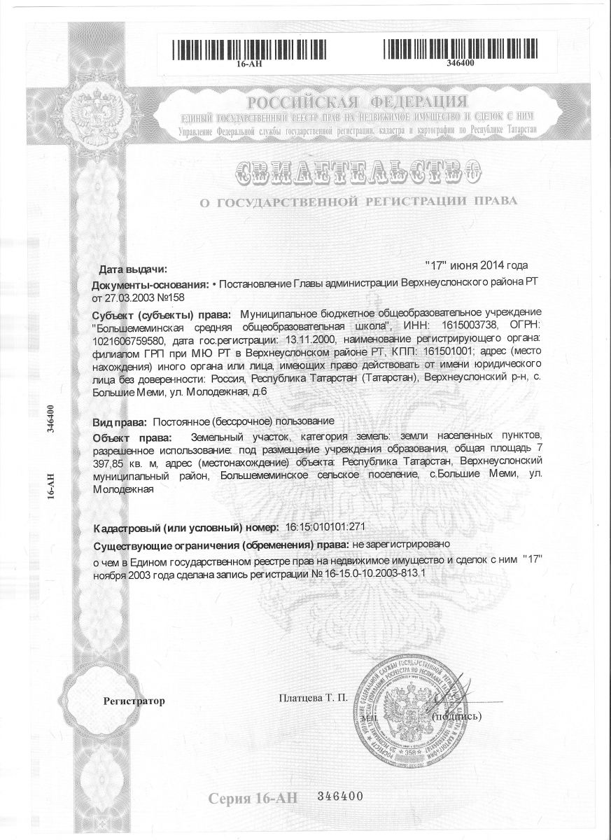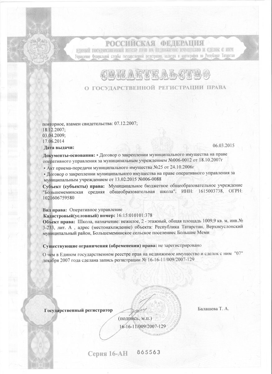 Короткое название: | МБОУ "Большемеминская СОШ" |