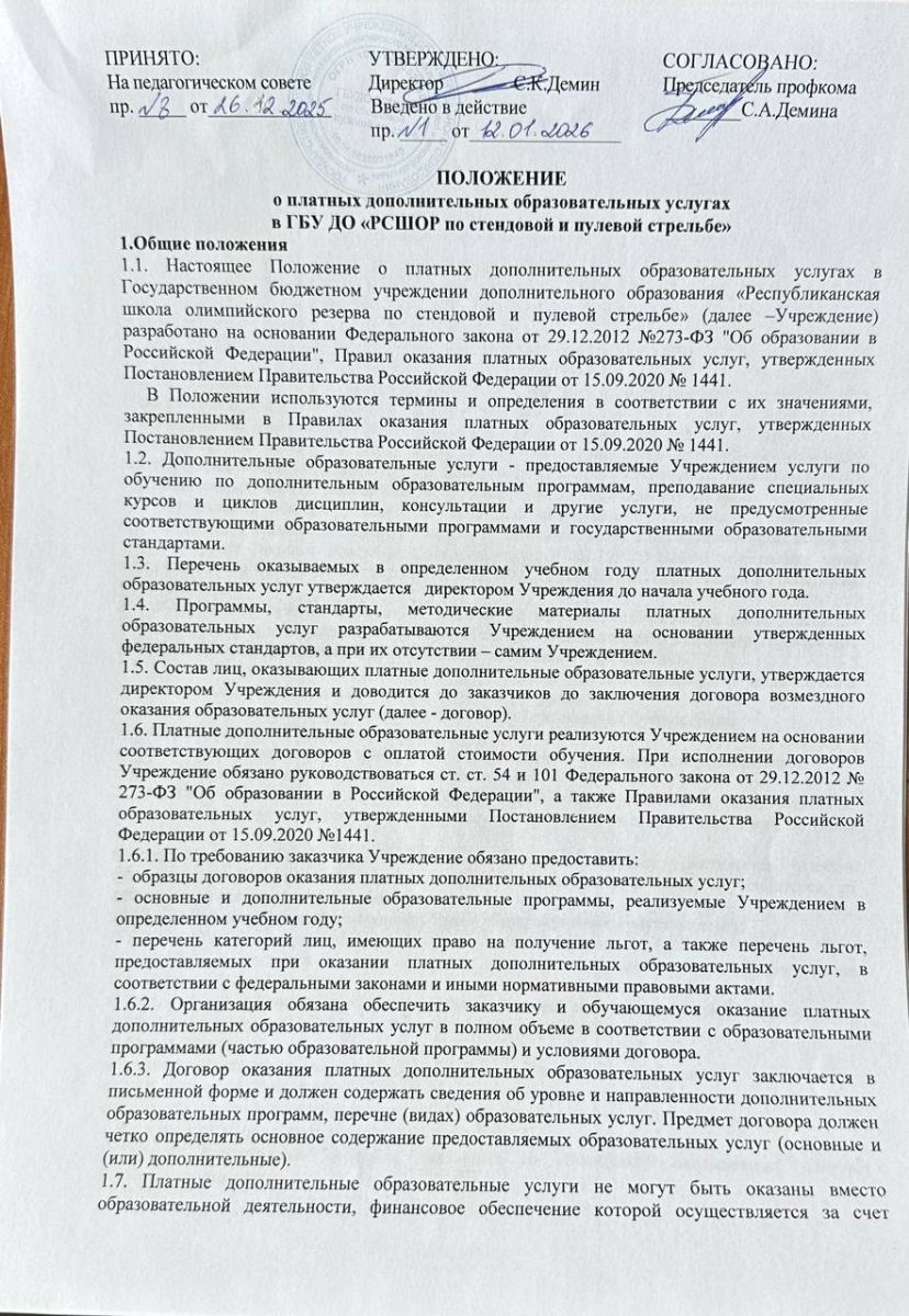 Положение о платных дополнительных образовательных услугах