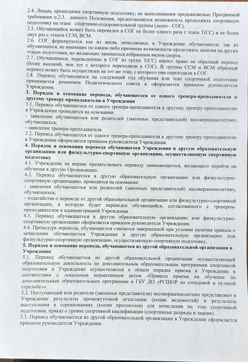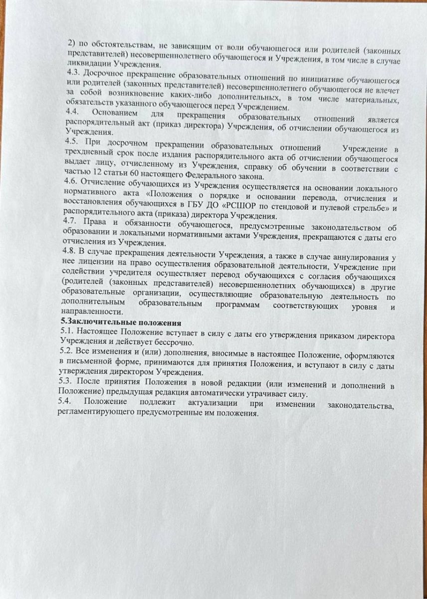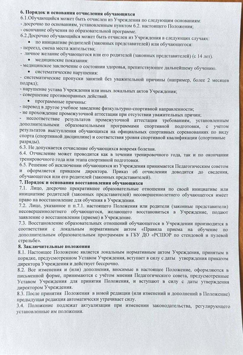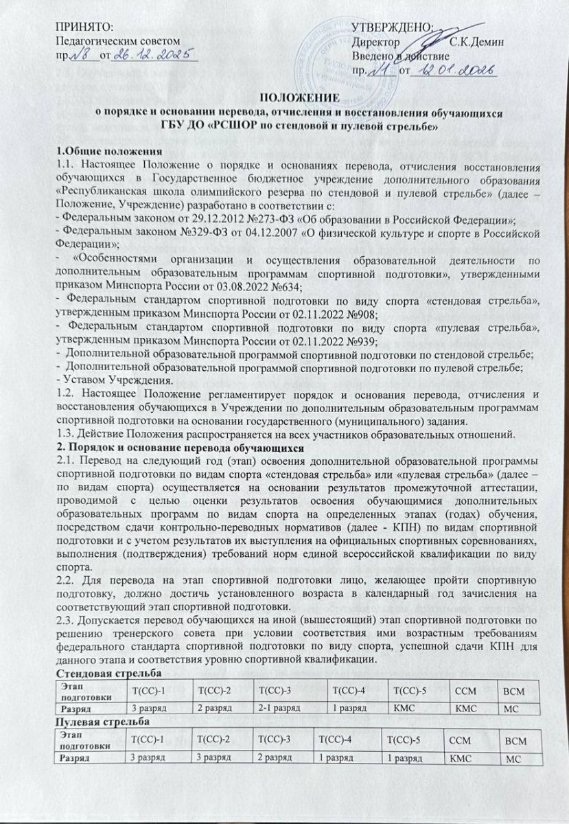 Положение о порядке и основании перевода, отчисления и восстановления занимающихся