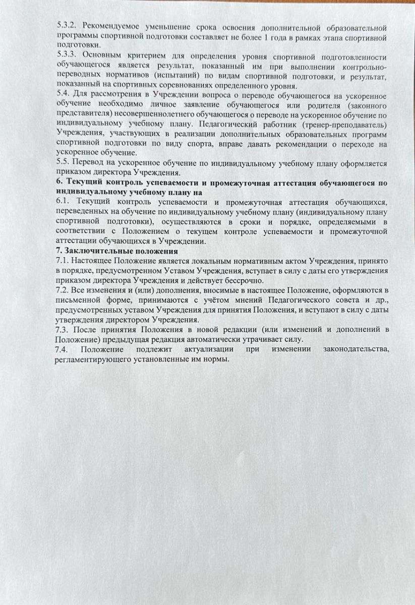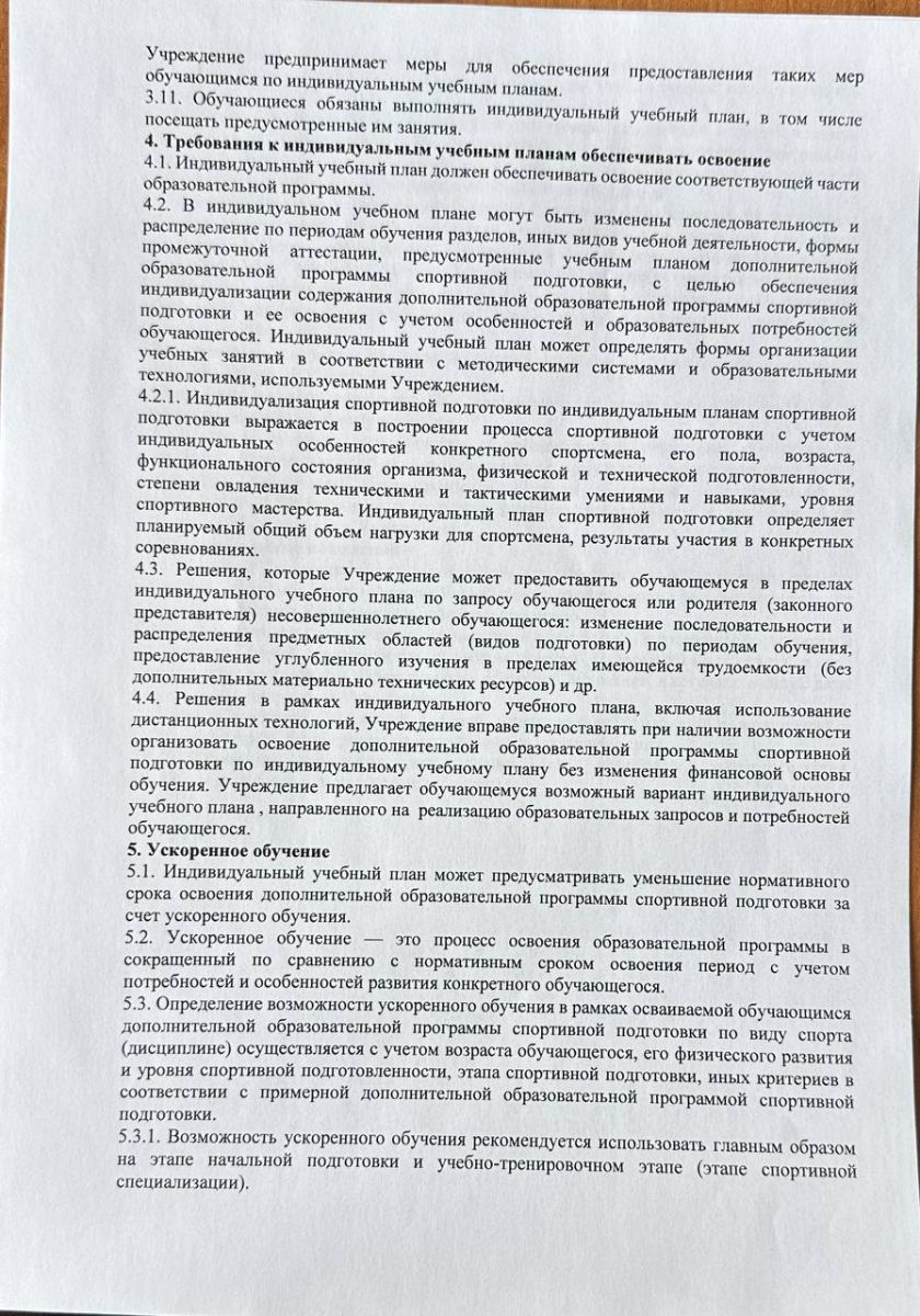 Положение о порядке обучения по индивидуальному учебному плану, в том числе ускоренного обучения, в пределах осваиваемой дополнительной образовательной программы спортивной подготовки