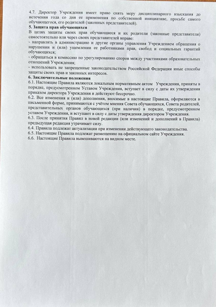 Правила внутреннего распорядка обучающихся