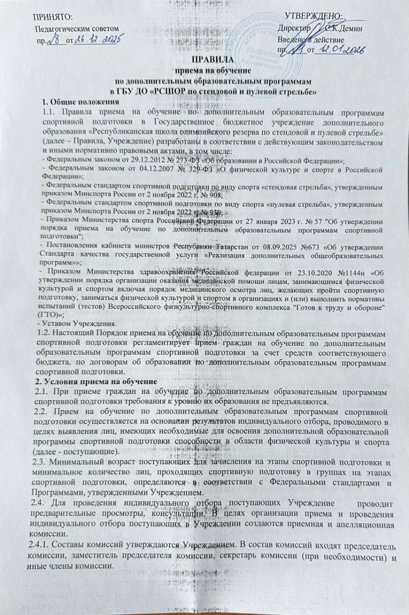 Государственное бюджетное учреждение дополнительного образования"Республиканская спортивная школа олимпийского резерва по стендовой и пулевой стрельбе"