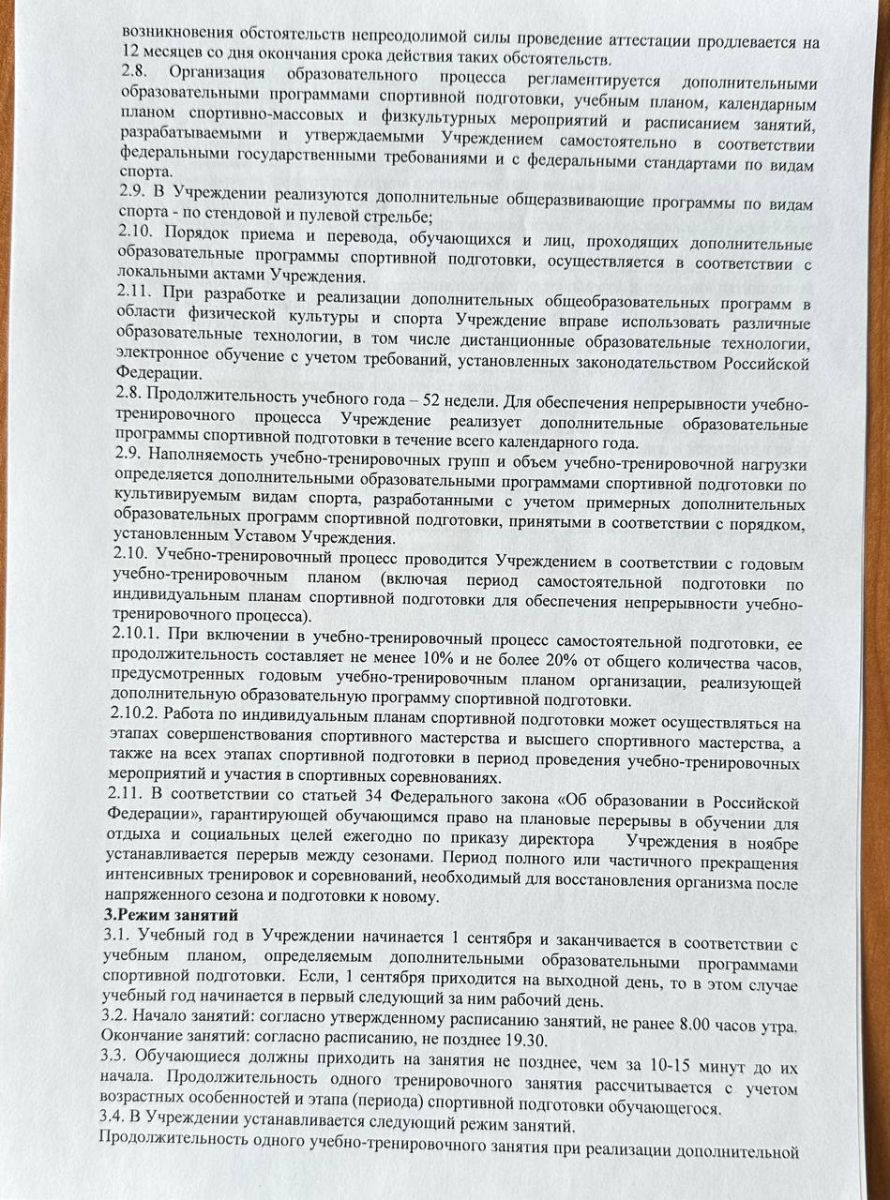 Положение о режиме занятий