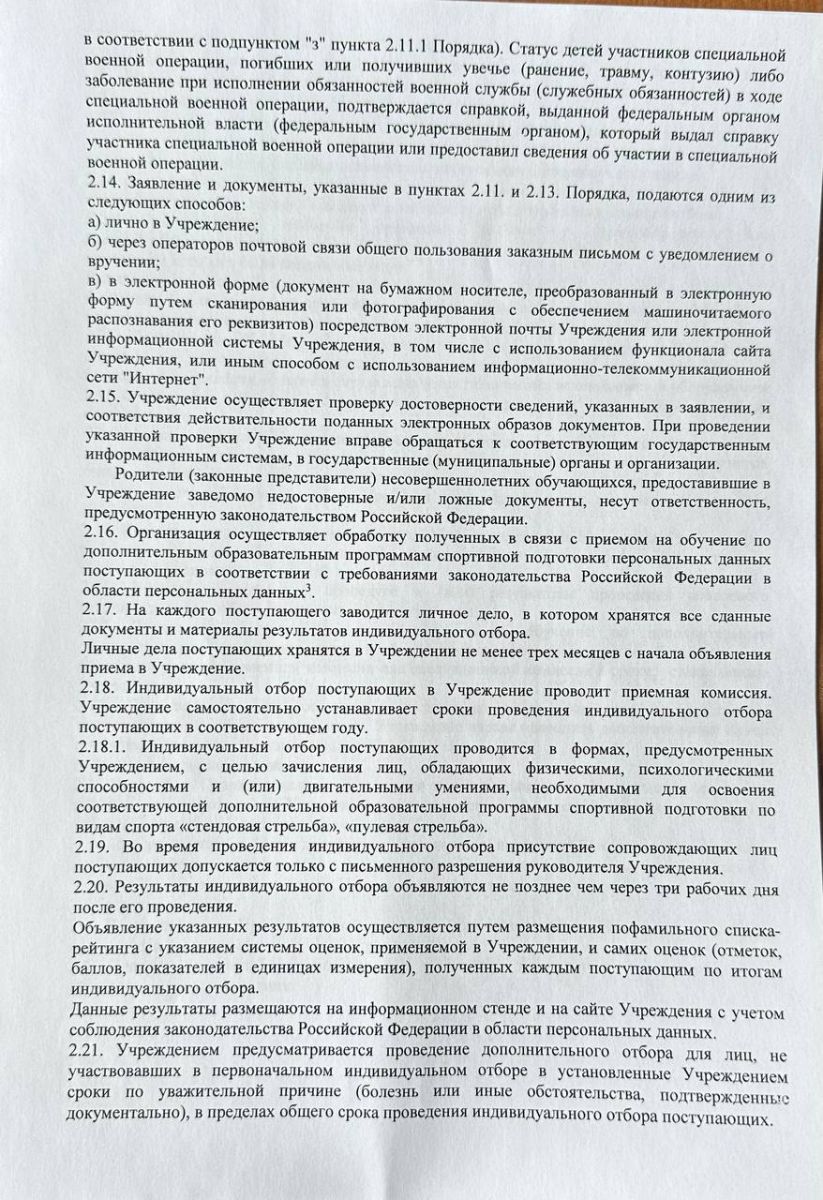 Правила приема на обучение по дополнительным образовательным програмам