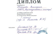 "Тере классика" Бөтенрәссәй конкурсының район этабында гимназиядән 6 нчы А сыйныфы укучылары Анохна Полина, Вильямова Мәриям, Жесткова Виктория (җитәкчеләре рус теле һәм әдәбияты укытучысы Тихонова Т.Н.) катнашты. Жесткова Вика беренче урынга чыкты.