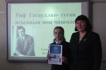 15 нче мартта гимназия укучылары Тухватуллина Гөлшат(8нче сыйныф), Хөсәенова зилә(7нче сыйныф ) татар теле укытучысы Зиганшина Р.А җитәкчелегендә Яшел Үзән шәһәрендәге 3нче гимназиядә үткәрелгән “Күренекле татарлар” төбәкара фәнни-эзләнү конференциясендә катнаштылар. -